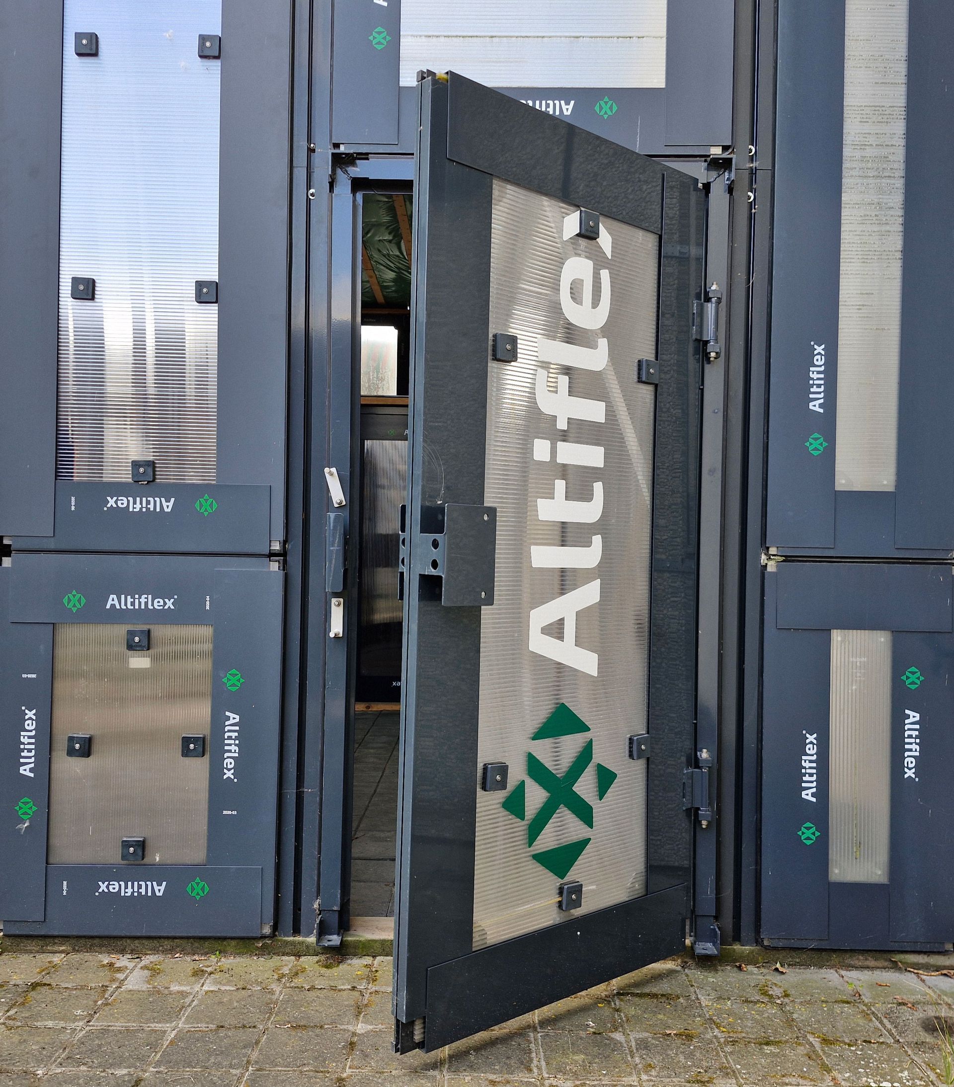 Altiflex interimsdøre og porte er en effektiv og robust lukning af adgangsveje og indgangspartier til byggepladser. Døre og porte består af genanvendelige og energibesparende moduler, der er justerbare og kan tilpasses alle byggerier både indendørs og udendørs.